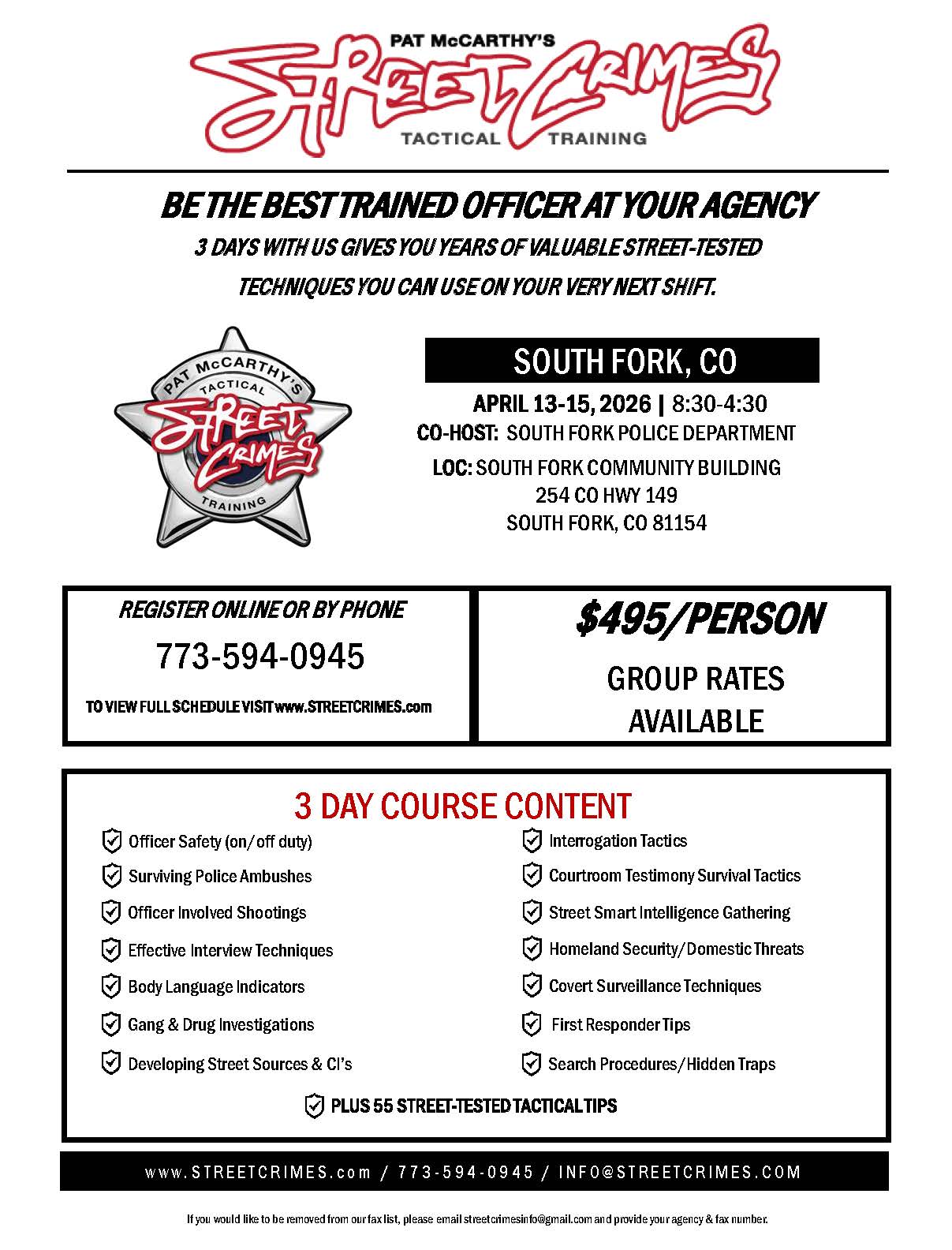 For information on the purchase of any items, call 719-873-1040, email Chief Pierce at ojpierce@southfork.org or come in to the South Fork Police Department to get them in person.